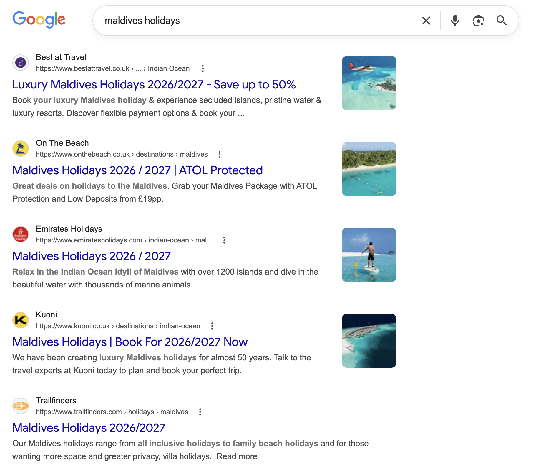 Despite a website with plenty of great content, Best at Travel's key landing pages such as "Dubai Holidays" and "Honeymoon Holidays" were underperforming in organic search. Relevant keywords weren't ranking on page one, limiting visibility and conversion opportunities.